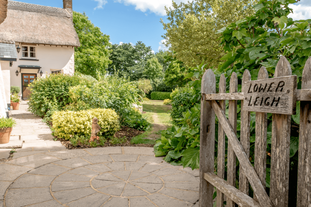 And the gardens, that’s another thing. Not your average garden by any means – 3 acres of grounds with high walls and tall hedges, a walnut tree and an orchard where sheep happily graze beneath the apple trees. In the spring it’s a mass of sweet scented blossom, in early autumn the boughs are heavy with fruit. Stroll around, stop for a quiet chat in the little thatched hideaway, a welcome retreat from the blazing sun in the height of summer. Go through the arched gate in the wall, amble down the lane to the ford and have a paddle.