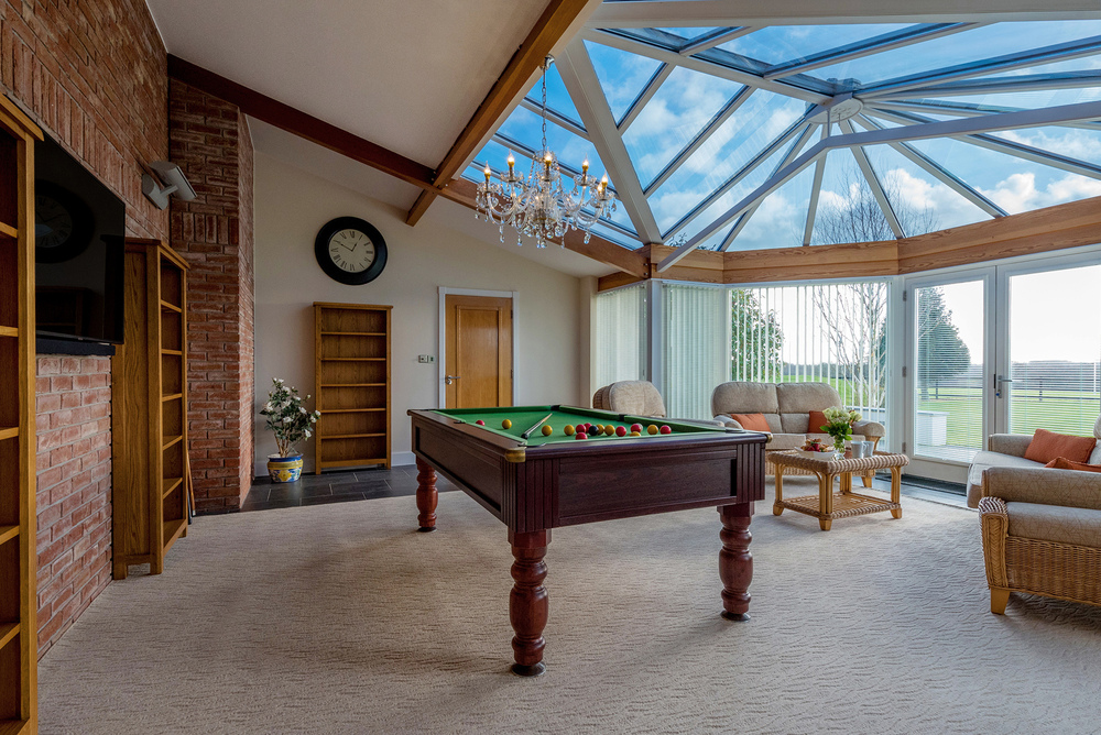 Herons Bank is a modern, large group holiday house that sleeps 14 people in 5 bedrooms. There’s a spacious dining room that opens onto a large secure garden, a games room, and a pool hall with a heated swimming pool and hot tub. Outside there's a Nordic style BBQ lodge for year round use and play equipment plus a trampoline for children. This holiday house is fitted with all mod cons and has all you need for your group holiday or short break.