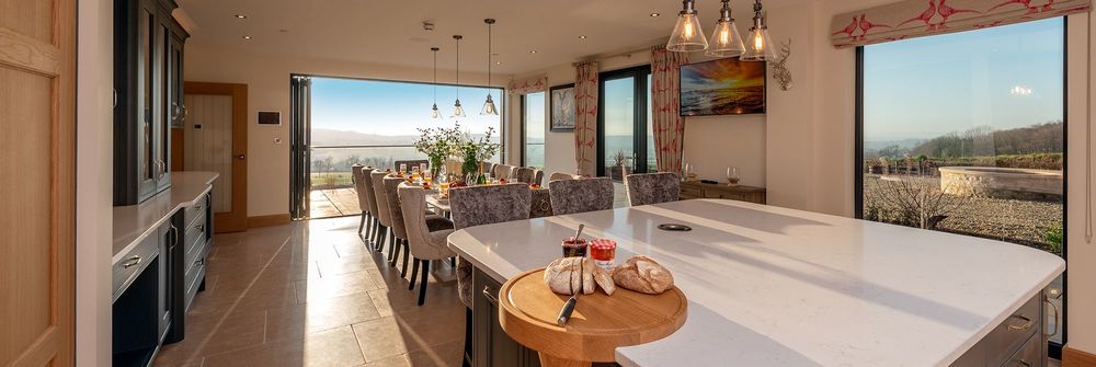 Outside there's a private hot tub, a BBQ lodge, children's play area and a heated pool. The views are breathtaking, Hillydays rolling on forever across an unspoilt landscape of hills and fields. Book for family holidays, quiet days away with friends and for self catering corporate breaks, or come and celebrate that notable birthday or momentous anniversary with your nearest and dearest.