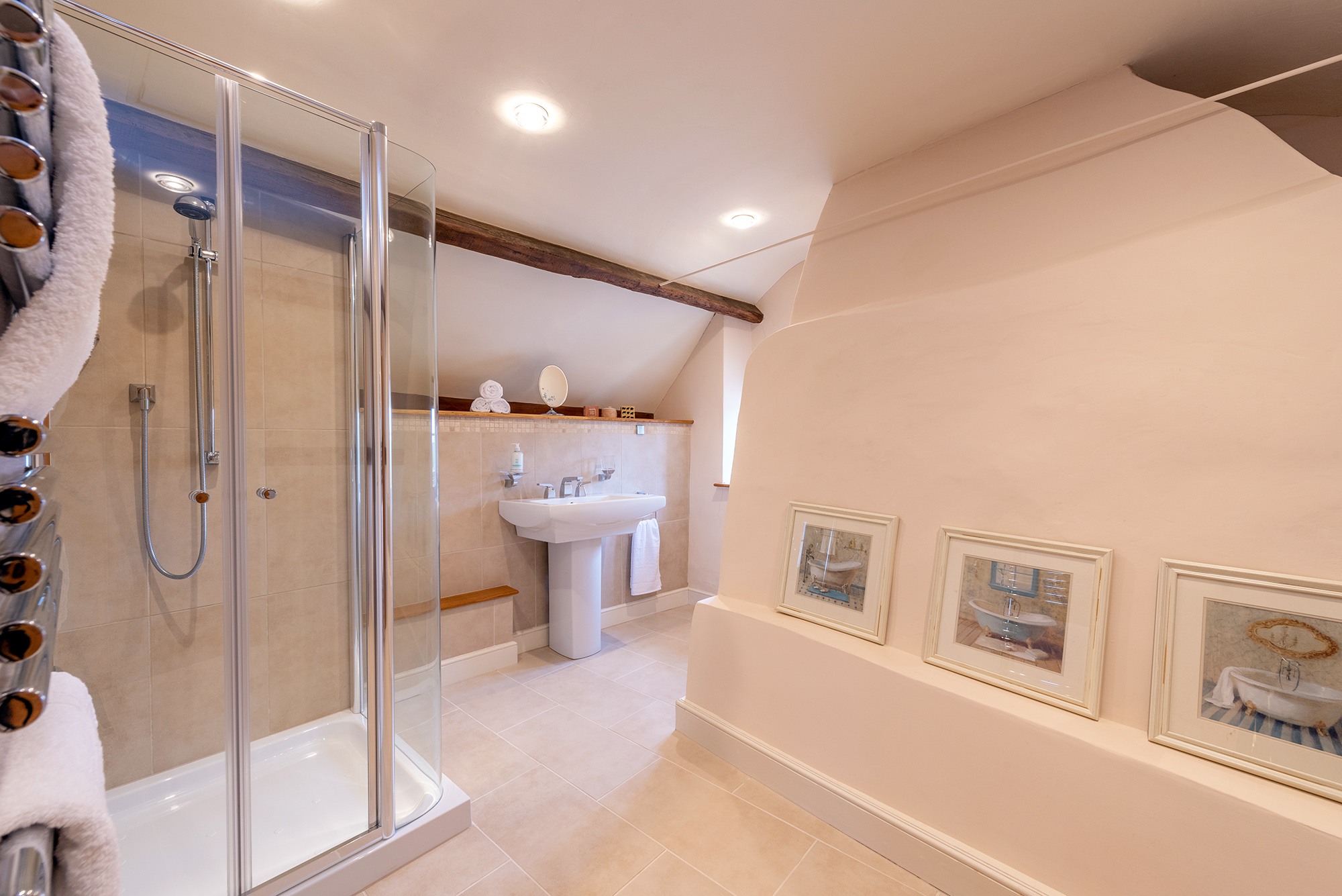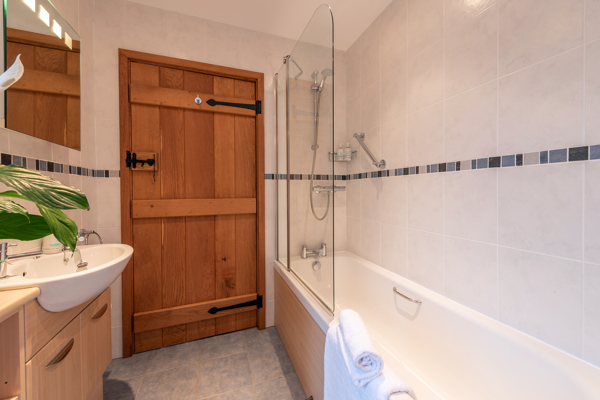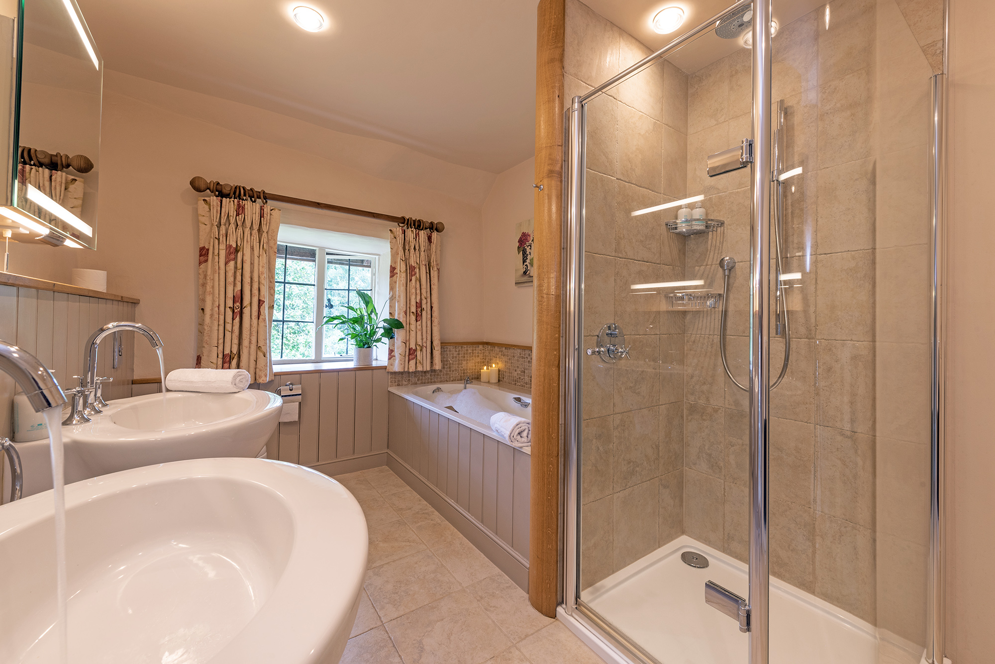 Lower Leigh - The family bathroom has a roll top bath and a separate shower -